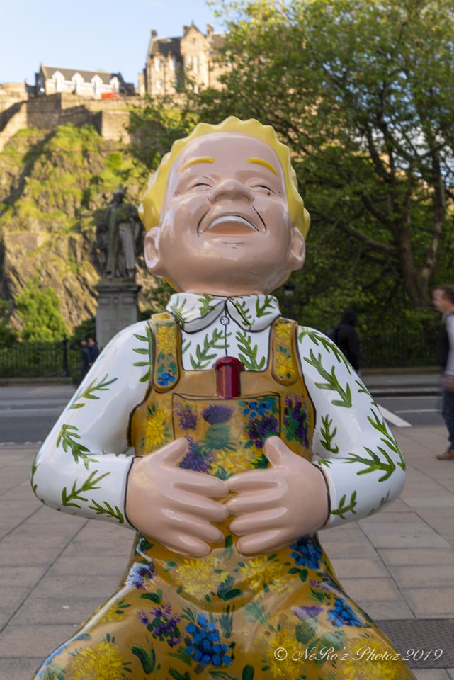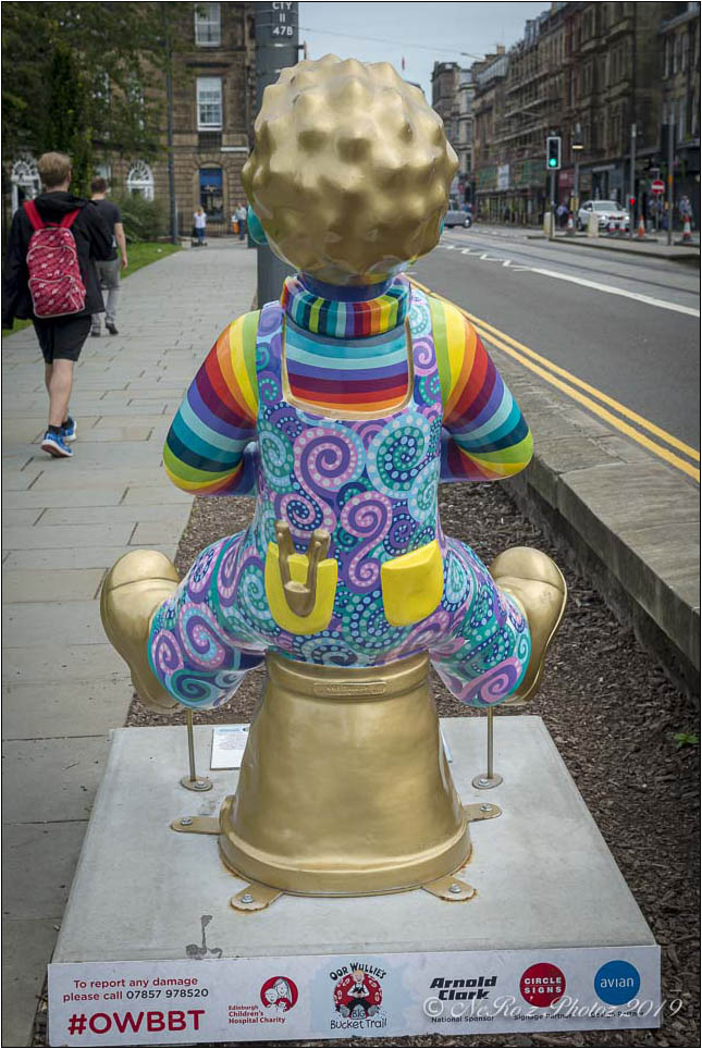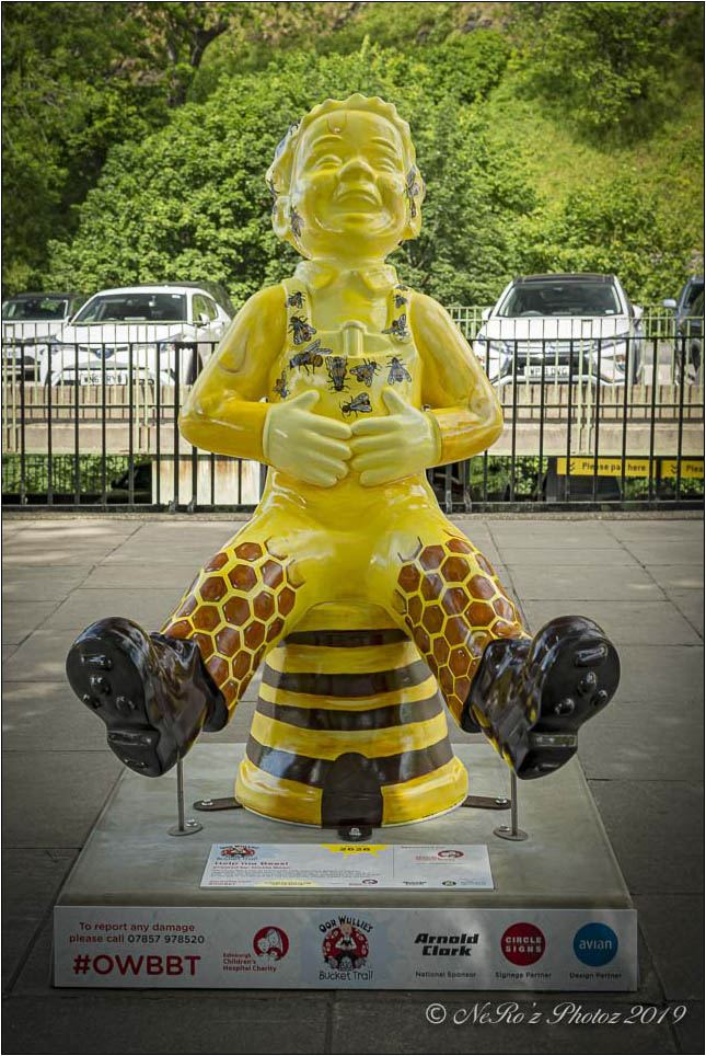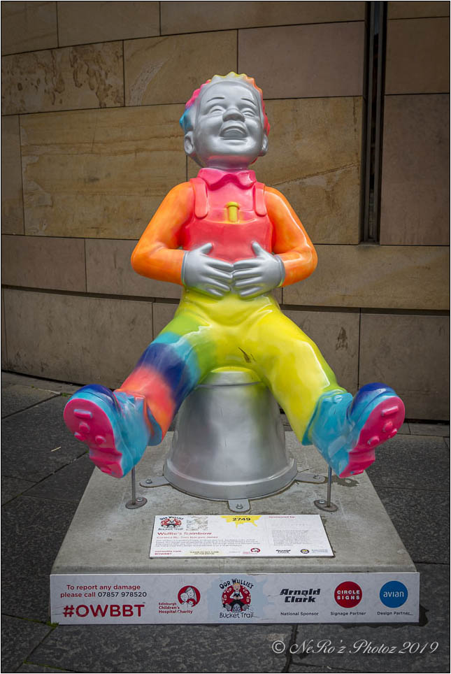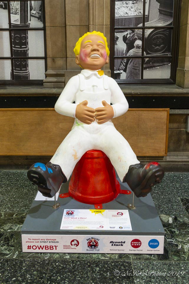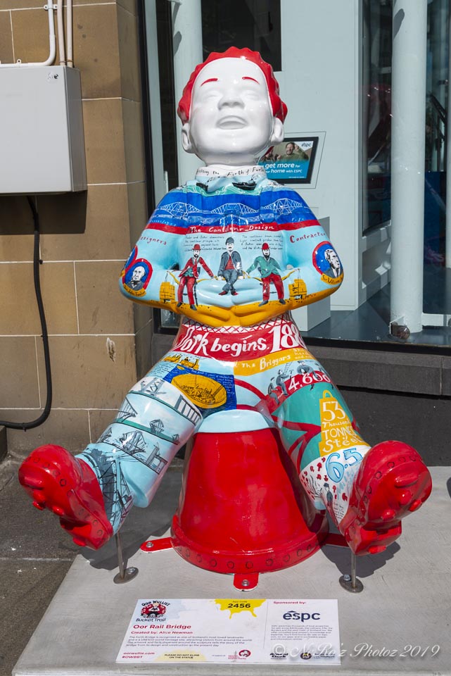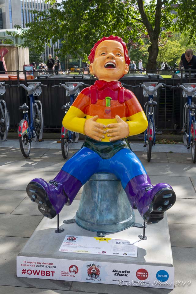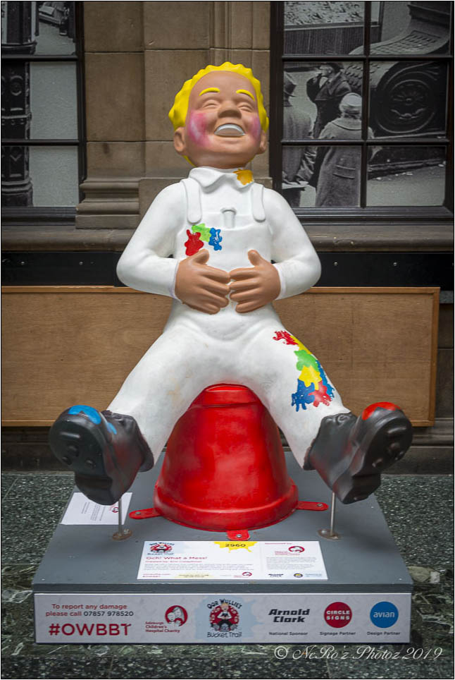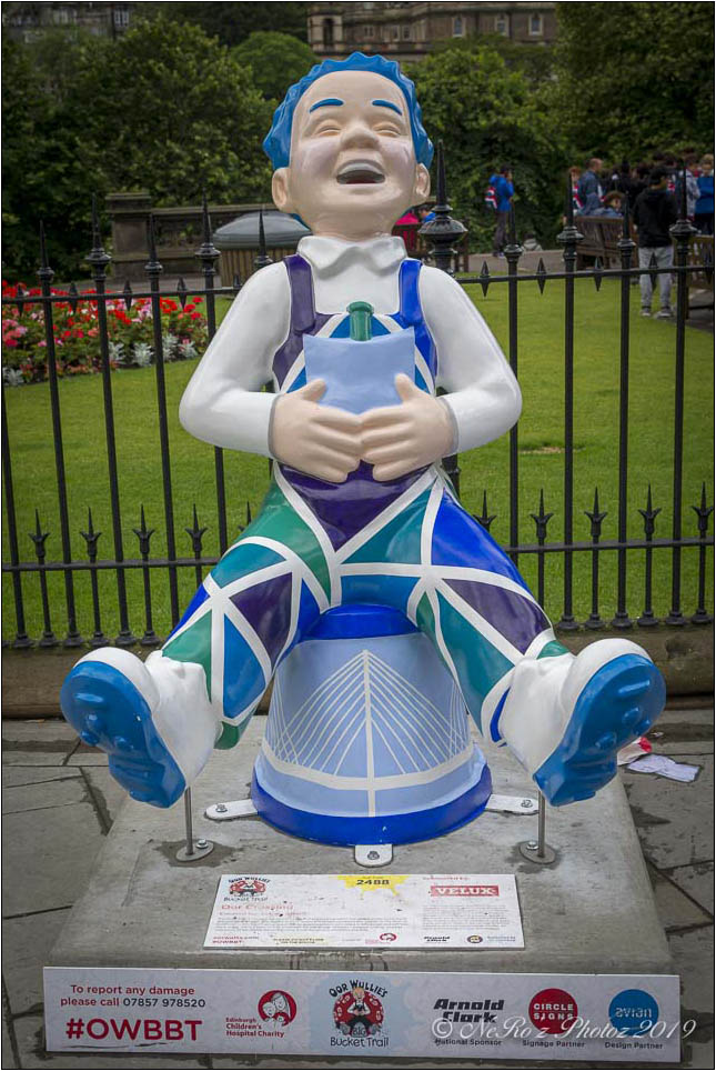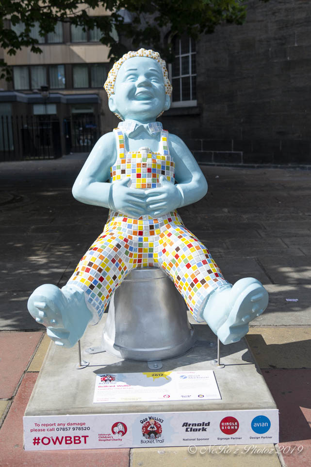 Between June and August there were a number of Oor Wullie statues, painted by various artists, sited around the major towns and cities in Scotland. The purpose of the trail was to raise funds for children’s’ hospital charities