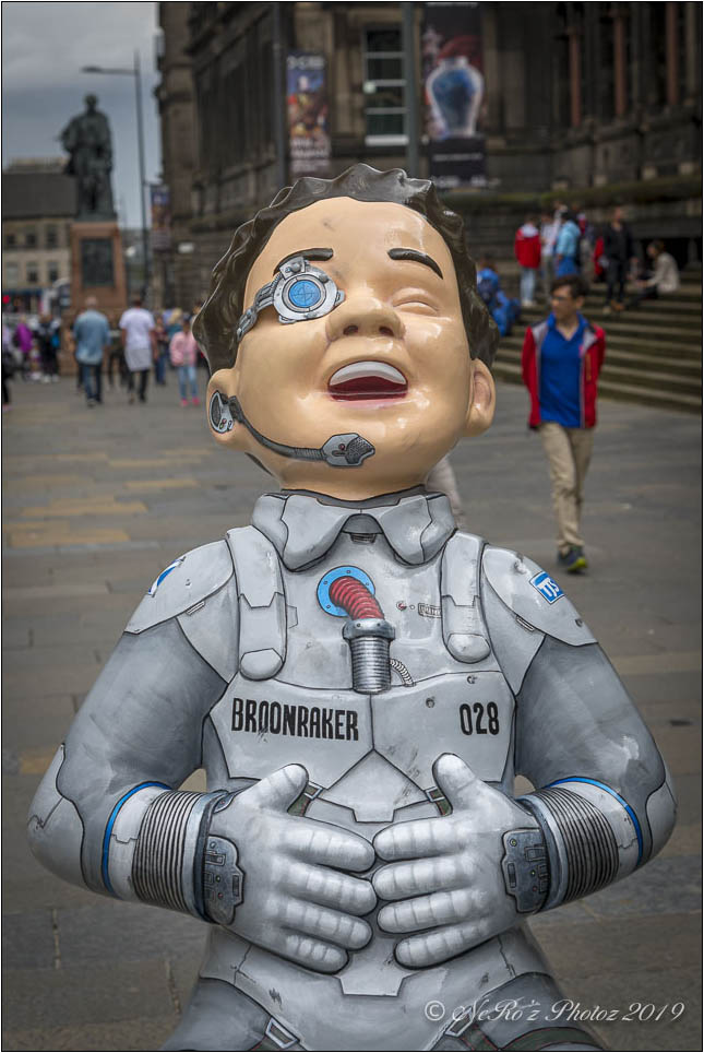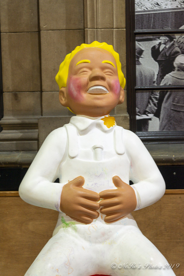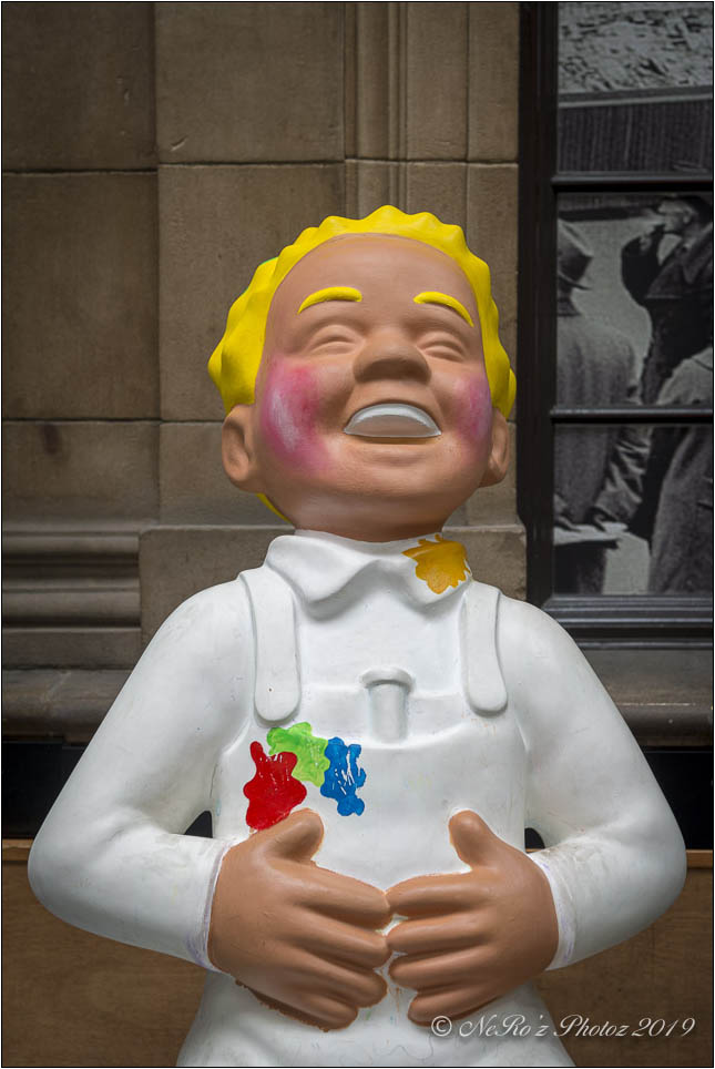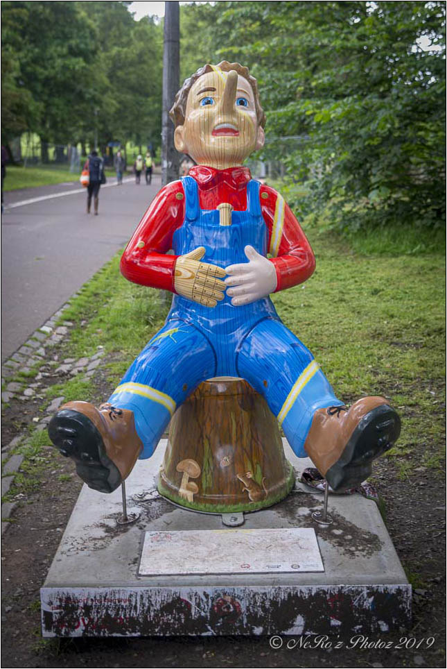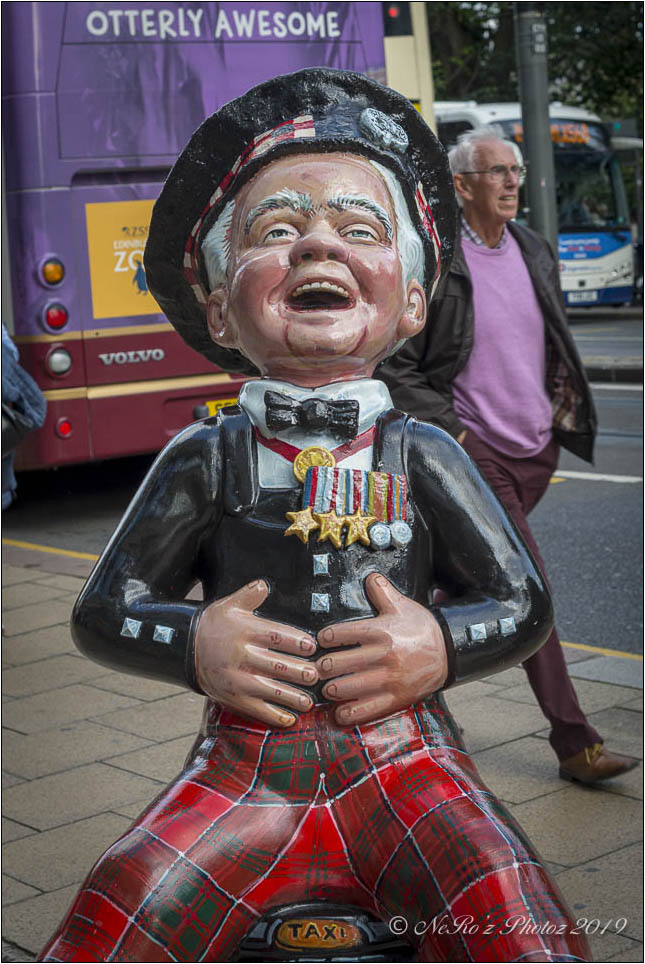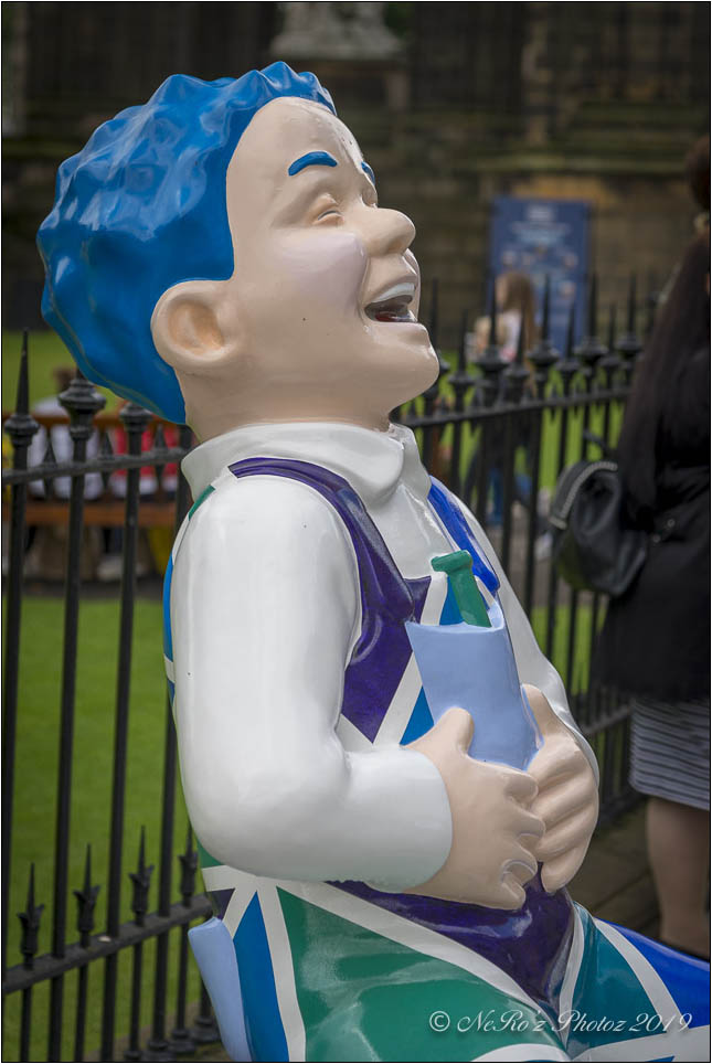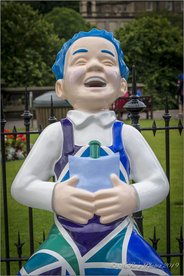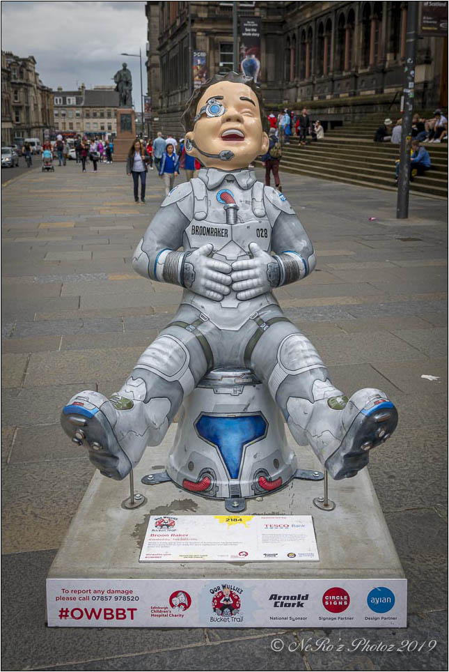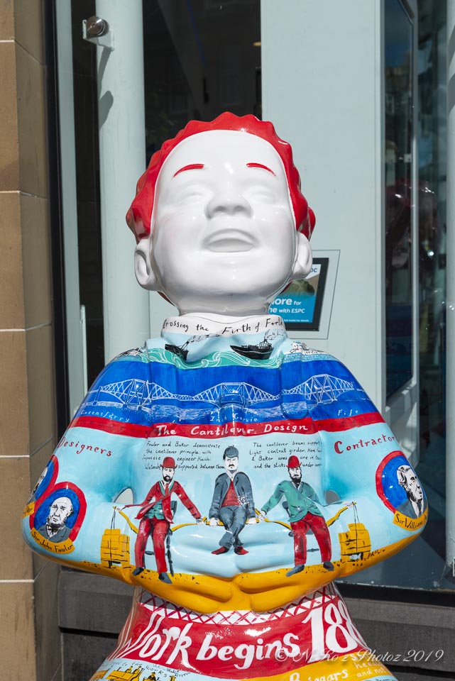 Between June and August there were a number of Oor Wullie statues, painted by various artists, sited around the major towns and cities in Scotland. The purpose of the trail was to raise funds for children’s’ hospital charities